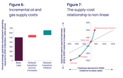 Even in our base case, OPEC supply on its own will not meet global demand growth. Investment elsewhere is needed, too. The industry is developing its most advantaged, low-cost/low-carbon barrels first, replaced with lower-quality resources beyond peak demand. Reserves growth from existing fields, new project developments and more exploration are also needed, and the required incentive is higher prices. This dynamic is exacerbated and accelerated by a delayed transition.